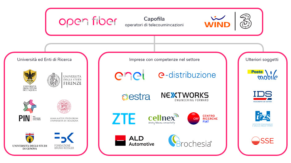 Nelle città di Prato e L’Aquila sono stati selezionati, all’interno delle aree messe a disposizione dal MiSE per la sperimentazione 5G, i siti maggiormente idonei a offrire i servizi di nuova generazione sia nei centri storici, dove si trova la maggior parte delle sedi della Pubblica Amministrazione, sia in alcune zone periferiche di particolare importanza per la presenza di complessi industriali o di Università. Nella scelta si è data particolare rilevanza anche alla possibilità di interconnettere i differenti siti attraverso la fibra ottica, per massimizzare le performance di rete.